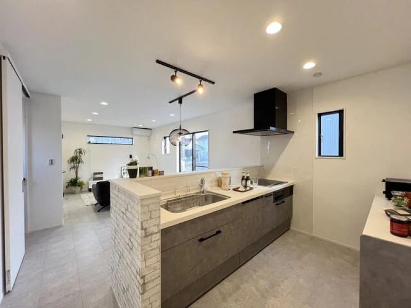| 設備 | プロパンガス、電気、上水道、下水道、側溝、システムキッチン、浄水器、食器洗浄乾燥機、IHクッキングヒーター、追焚機能、温水洗浄便座、シャンプードレッサー、エアコン、照明器具付き、庭、駐車2台可、ディンプルキー、モニタ付インターホン、火災警報器等設置済 | ||