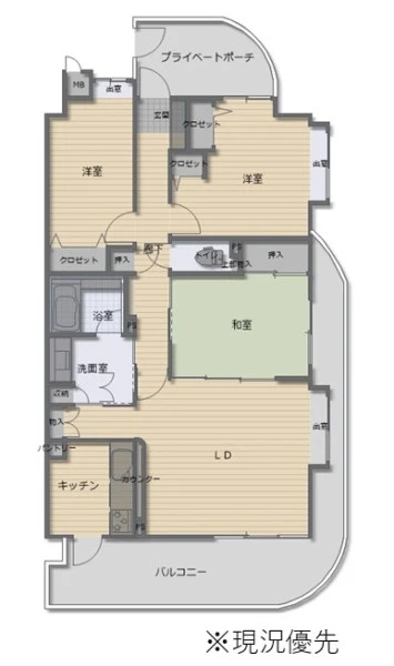 | 間取り | 3LDK | 間取り向き | 南 (角部屋) |