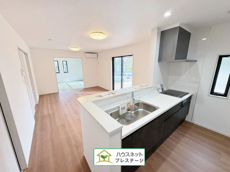 | 設備 | 上水道、複層ガラス、モニタ付インターホン、カウンターキッチン、システムキッチン、3口以上コンロ、バス、シャワー、追焚機能、浴室乾燥機、浴室に窓、浴室暖房、トイレ2箇所、温水洗浄便座、洗面台、洗面所、シャンプードレッサー、床下収納、下水道、IHクッキングヒーター、オール電化、駐車3台以上可 | ||
