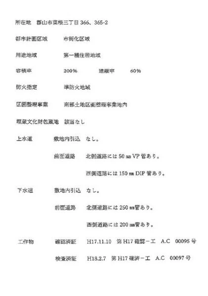 建ぺい率/容積率 | 60% / 200% | 都市計画 | 市街化区域 |