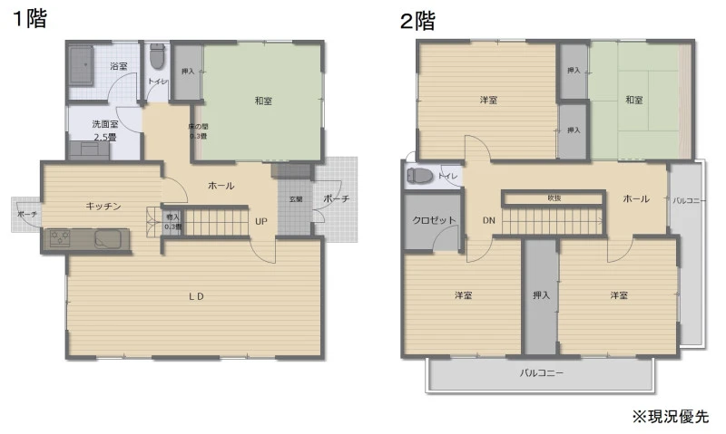 設備 | 上水道、下水道、都市ガス、南面バルコニー、バス、浴室に窓、浴室1坪以上、追焚機能、トイレ2箇所、洗面台 | ||