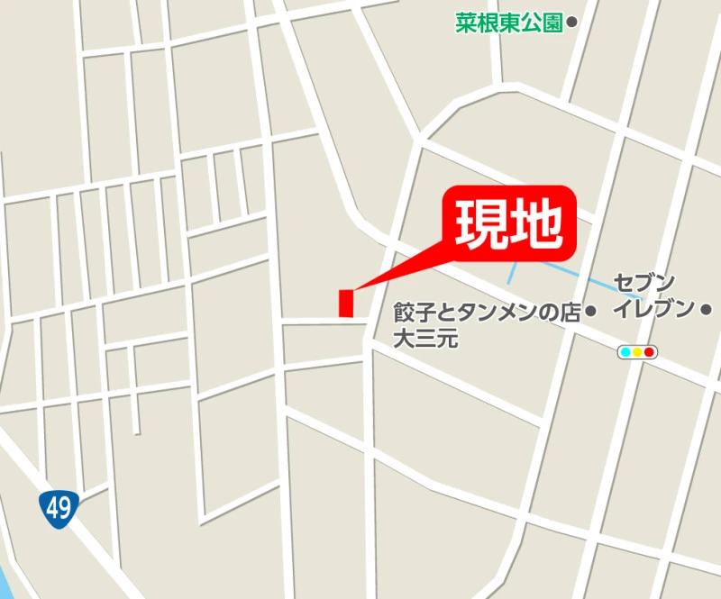 ※地図上の「対象地」は「福島県郡山市菜根3丁目 」付近を示しています。実際の場所ではない場合がございます。詳しくはお問い合わせください。