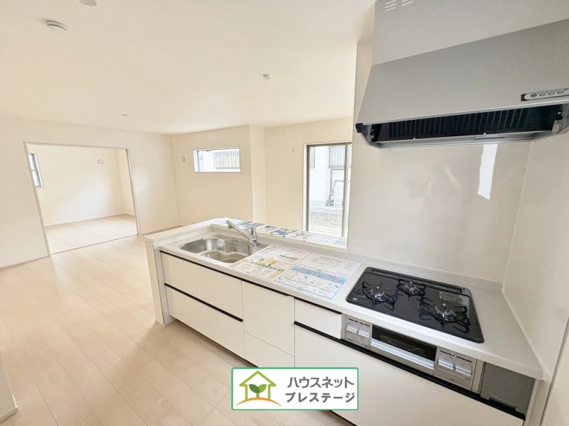 設備 | 上水道、複層ガラス、モニタ付インターホン、カウンターキッチン、システムキッチン、3口以上コンロ、バス、シャワー、追焚機能、浴室乾燥機、浴室に窓、浴室暖房、トイレ2箇所、温水洗浄便座、洗面台、洗面所、シャンプードレッサー、床下収納、プロパンガス、下水道、電気、駐車2台可 | ||