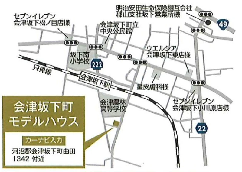 JR只見線 会津坂下駅 徒歩5分 (381m) JR只見線 若宮駅 徒歩32分 (2527m) |