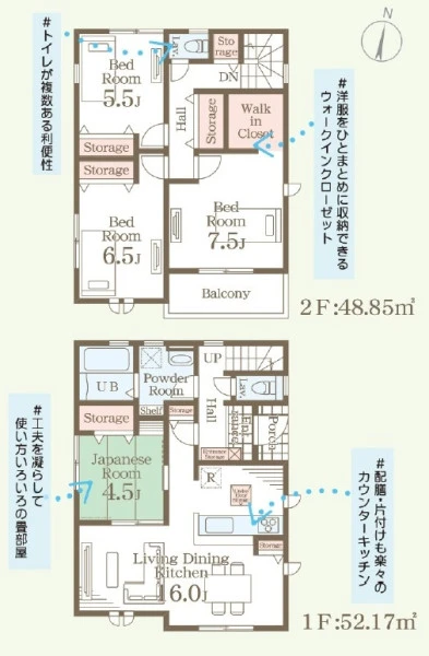 特徴 | 24時間換気システム、【安積第三小学校。安積第二中学校】◆駐車スペース3~4台可(車種による)◆安積第三小学校まで徒歩10分とお子さまの通学も安心♪◆北向公園の隣なので子育て世代にもおススメ♪◆長期優良住宅認定物件 | ||