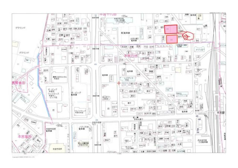 ※地図上の「対象地」は「福島県本宮市本宮字千代田 」付近を示しています。実際の場所ではない場合がございます。詳しくはお問い合わせください。