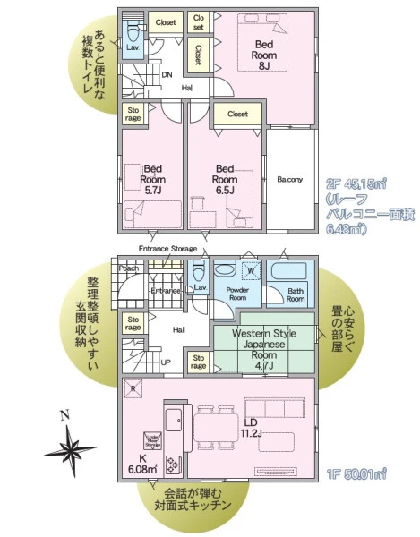 | 設備 | 上水道、複層ガラス、モニタ付インターホン、カウンターキッチン、システムキッチン、3口以上コンロ、バス、シャワー、追焚機能、浴室乾燥機、浴室に窓、浴室暖房、トイレ2箇所、温水洗浄便座、洗面台、洗面所、シャンプードレッサー、床下収納、電気、駐車3台以上可、都市ガス、下水道 | ||