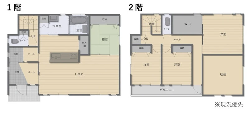 | 特徴 | 整形地、南側道路面、吹抜、南向き、全居室収納、和室、LDK15帖以上 | ||