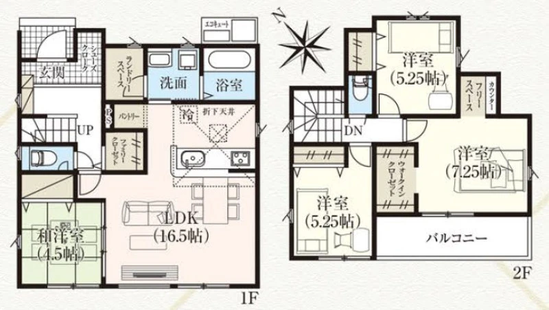 | 設備 | 上水道、複層ガラス、モニタ付インターホン、カウンターキッチン、システムキッチン、3口以上コンロ、バス、シャワー、追焚機能、浴室乾燥機、浴室に窓、浴室暖房、トイレ2箇所、温水洗浄便座、洗面台、洗面所、シャンプードレッサー、床下収納、IHクッキングヒーター、オール電化、電気、下水道、駐車2台可 | ||