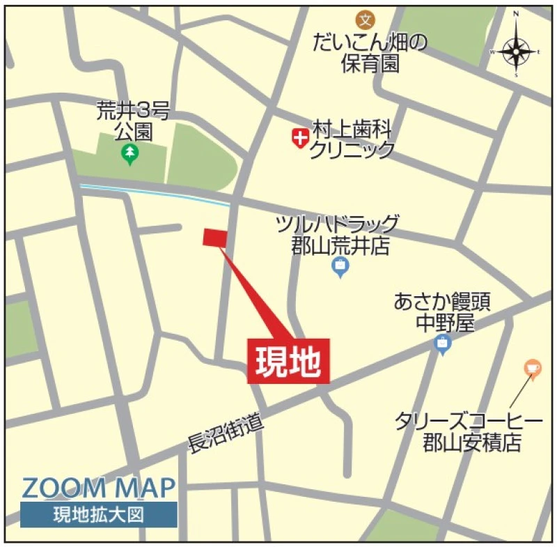 ※地図上の「対象地」は「福島県郡山市安積北井2丁目 」付近を示しています。実際の場所ではない場合がございます。詳しくはお問い合わせください。