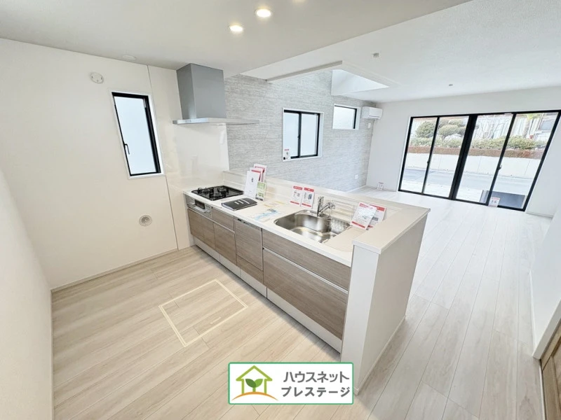 | 設備 | 上水道、複層ガラス、モニタ付インターホン、カウンターキッチン、システムキッチン、3口以上コンロ、バス、シャワー、追焚機能、浴室乾燥機、浴室に窓、浴室暖房、トイレ2箇所、温水洗浄便座、洗面台、洗面所、シャンプードレッサー、床下収納、駐車3台以上可、下水道、電気、プロパンガス | ||