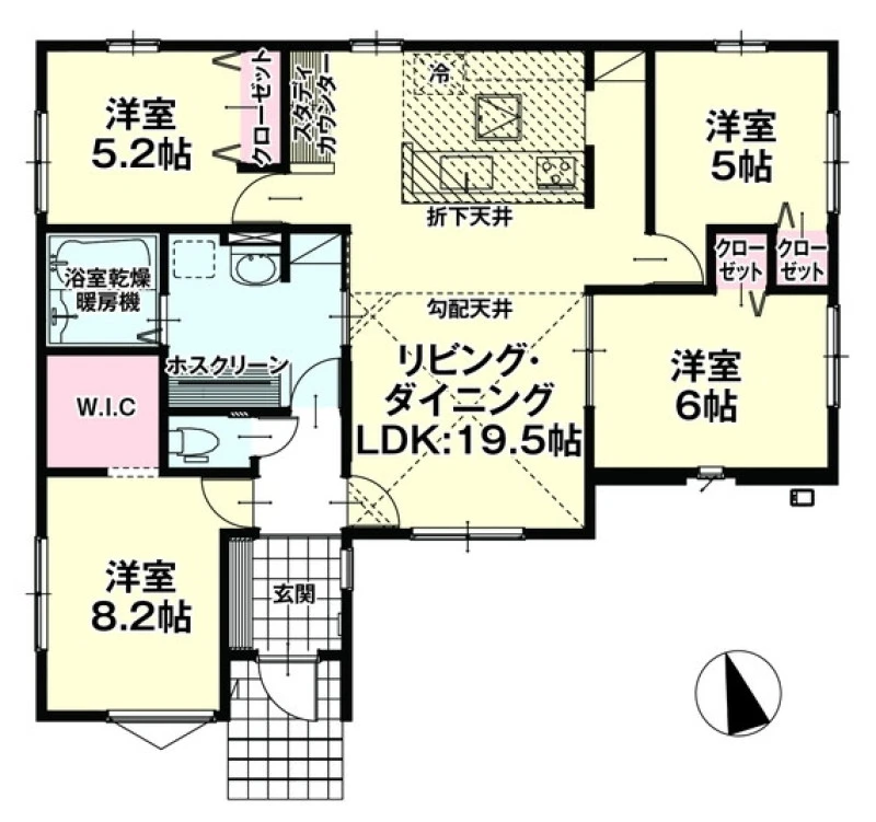 | 設備 | 上水道、複層ガラス、モニタ付インターホン、カウンターキッチン、システムキッチン、3口以上コンロ、バス、シャワー、追焚機能、浴室乾燥機、浴室に窓、浴室暖房、トイレ2箇所、温水洗浄便座、洗面台、洗面所、シャンプードレッサー、床下収納、駐車3台以上可、下水道、電気、プロパンガス | ||