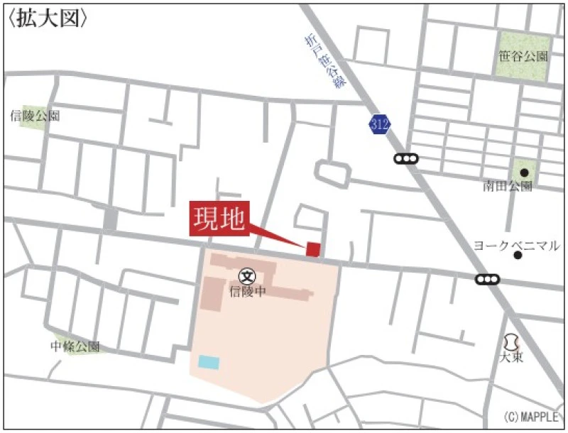 ※地図上の「対象地」は「福島県福島市笹谷字葭野 」付近を示しています。実際の場所ではない場合がございます。詳しくはお問い合わせください。