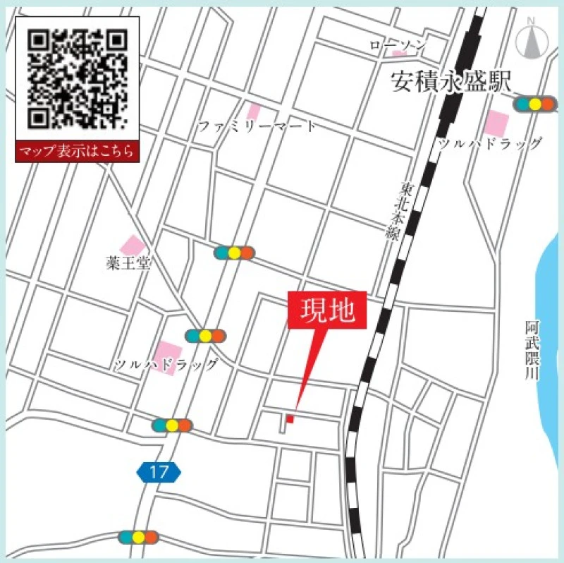 ※地図上の「対象地」は「福島県郡山市安積4丁目 」付近を示しています。実際の場所ではない場合がございます。詳しくはお問い合わせください。
