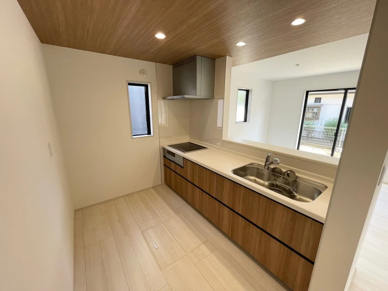 | 設備 | 上水道、下水道、IHクッキングヒーター、室内洗濯機置場、洗濯機置場、オール電化、南面バルコニー、複層ガラス、モニタ付インターホン、駐車2台可、システムキッチン、カウンターキッチン、パントリー、省エネ給湯器、浄水器、バス・トイレ別、浴室1坪以上、追焚機能、浴室乾燥機、シャンプードレッサー、シューズインクローゼット、床下収納、ウォークインクローゼット、洗面台、洗面所 | ||
