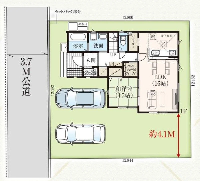 ・駐車スペース2台可能(車種による)