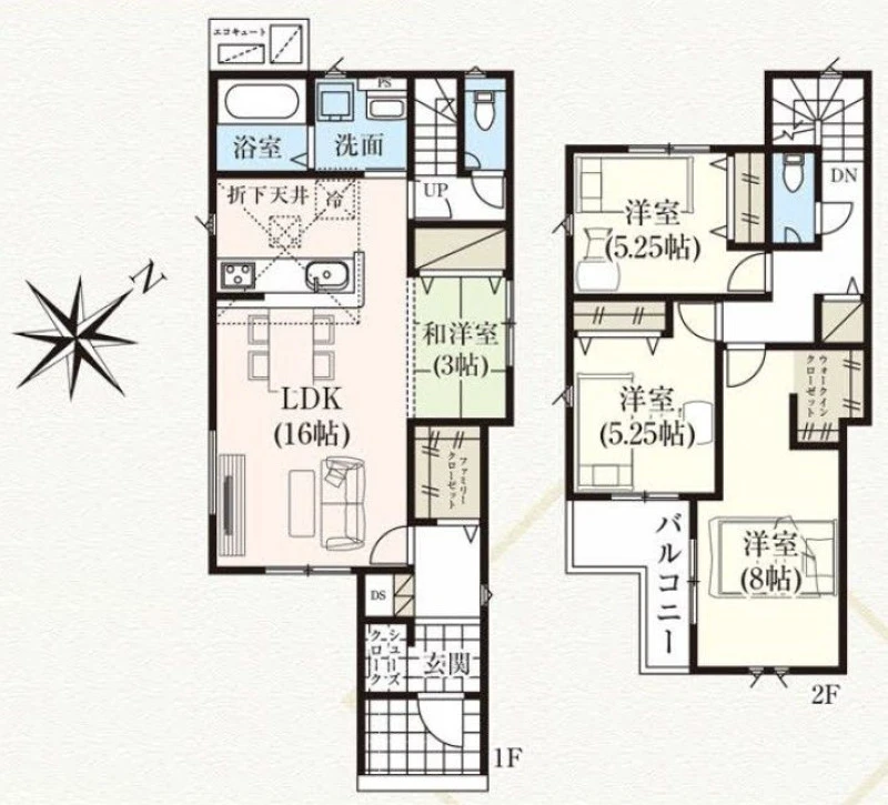 | 設備 | 上水道、複層ガラス、モニタ付インターホン、カウンターキッチン、システムキッチン、3口以上コンロ、バス、シャワー、追焚機能、浴室乾燥機、浴室に窓、浴室暖房、トイレ2箇所、温水洗浄便座、洗面台、洗面所、シャンプードレッサー、床下収納、IHクッキングヒーター、オール電化、電気、下水道、駐車2台可 | ||