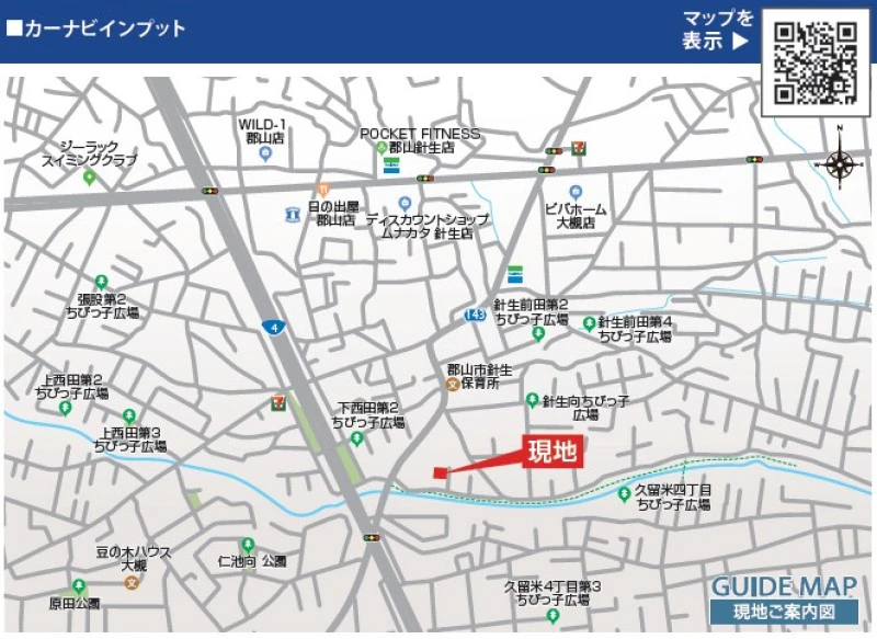 ※地図上の「対象地」は「福島県郡山市大槻町字針生向 」付近を示しています。実際の場所ではない場合がございます。詳しくはお問い合わせください。