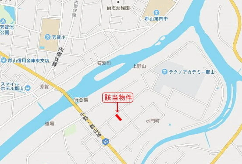 ※地図上の「対象地」は「福島県郡山市水門町 」付近を示しています。実際の場所ではない場合がございます。詳しくはお問い合わせください。