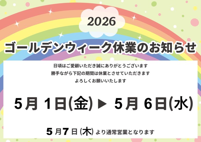 2026年5月7日(木)9:30より通常営業とさせていただきます。