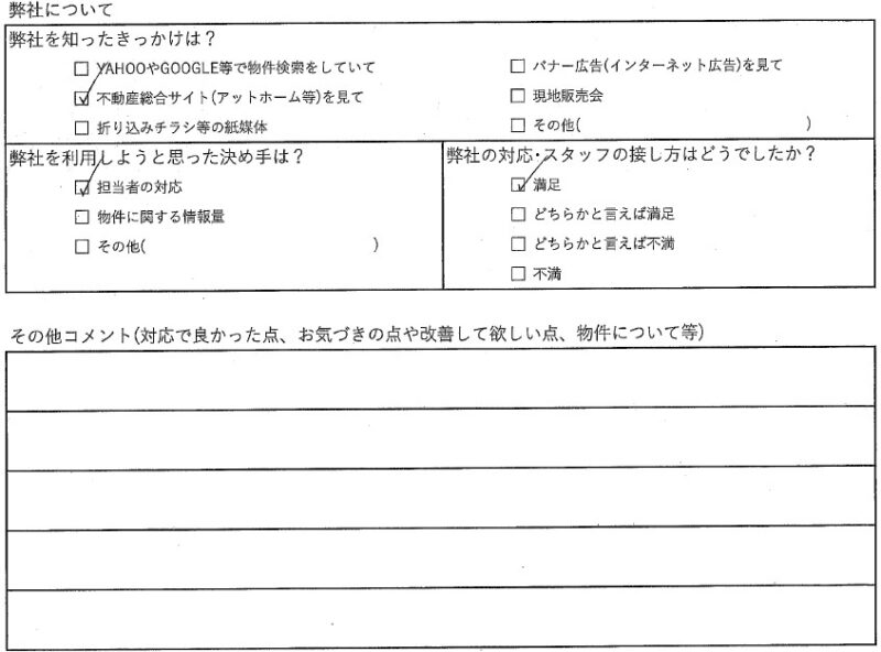 数ある不動産会社の中より弊社を選んでいただき誠にありがとうございました。